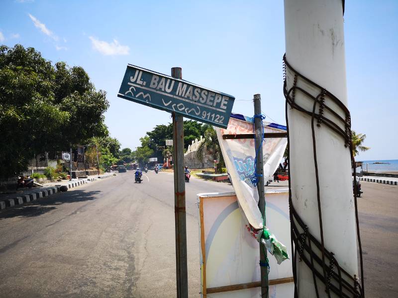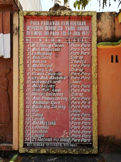 Het enorme standbeeld van de adelijk leider, de datoe van Soepa, Bau Masepe, bij de entree van Parepare.